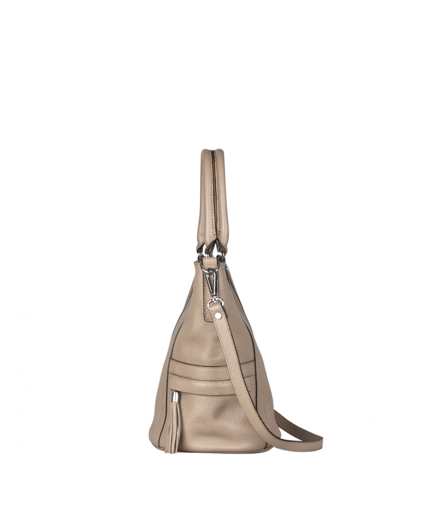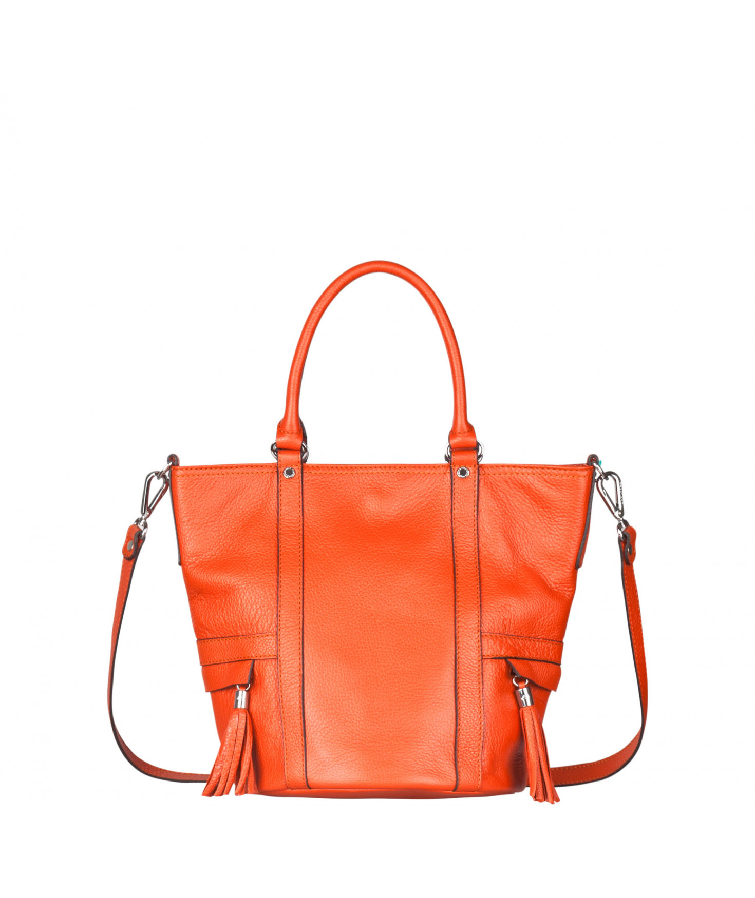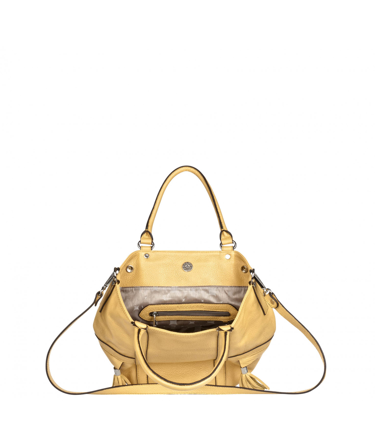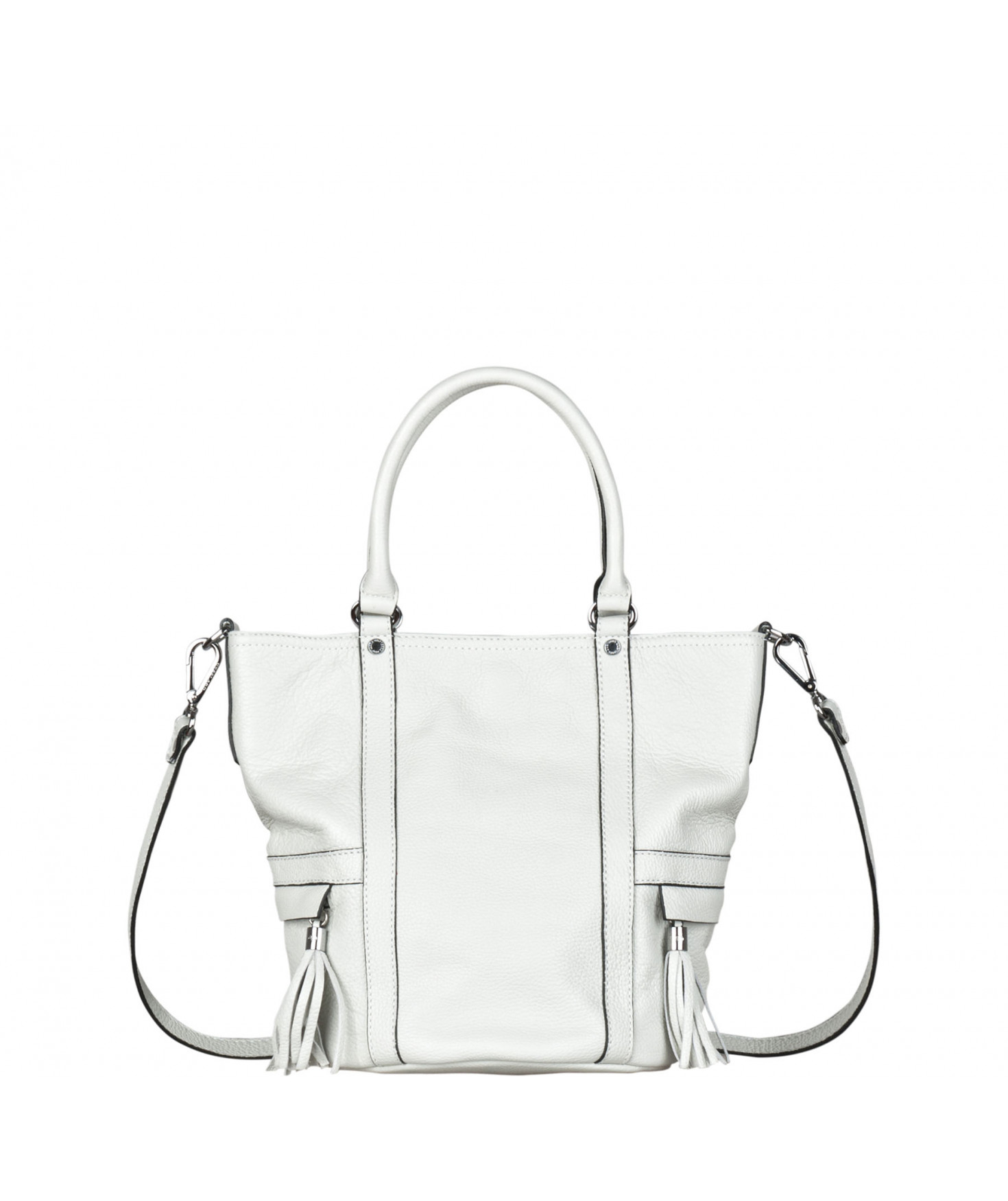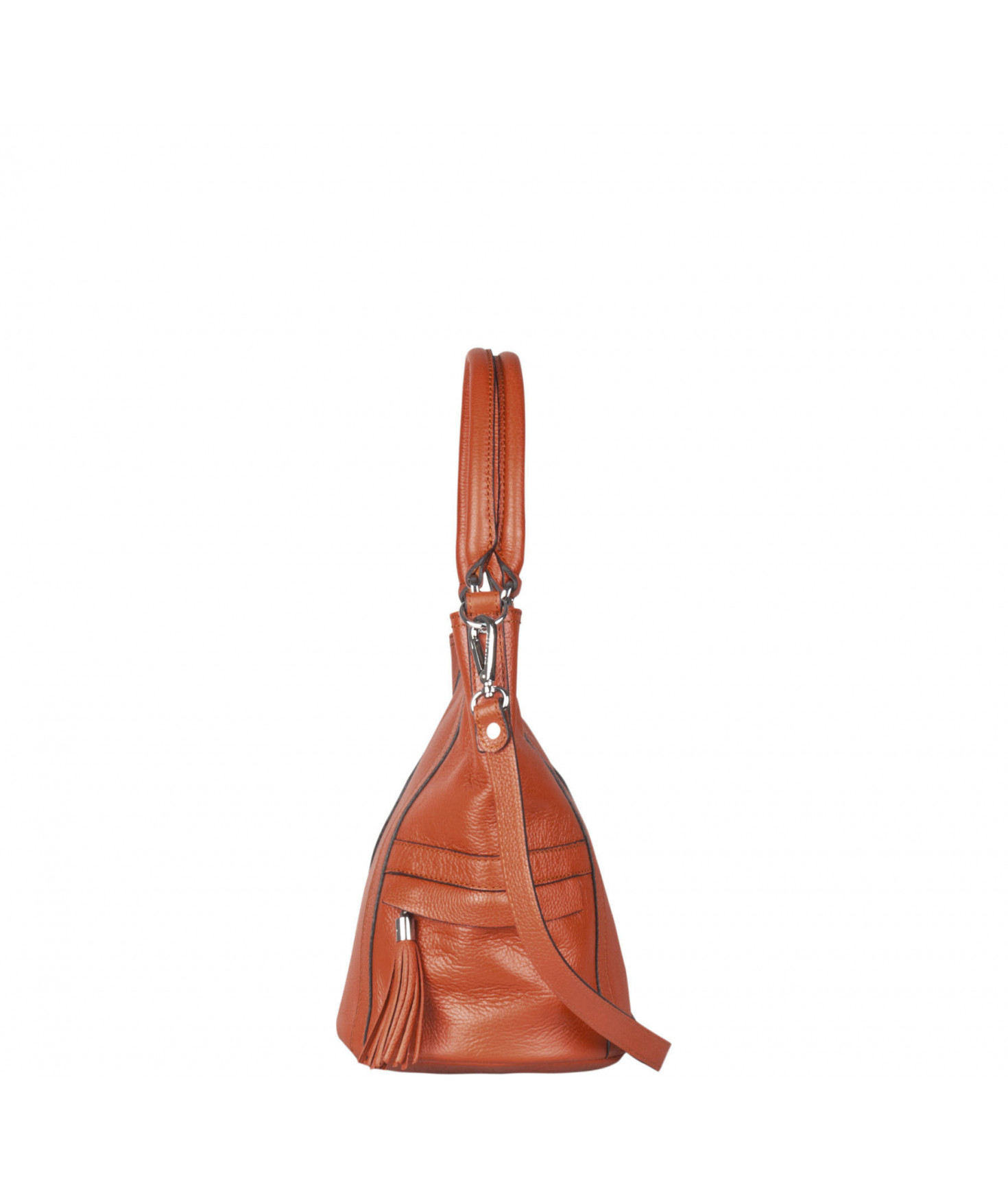 Sac seau porté épaule, fermé par magnétique, deux anses et une bandoulière amovible.