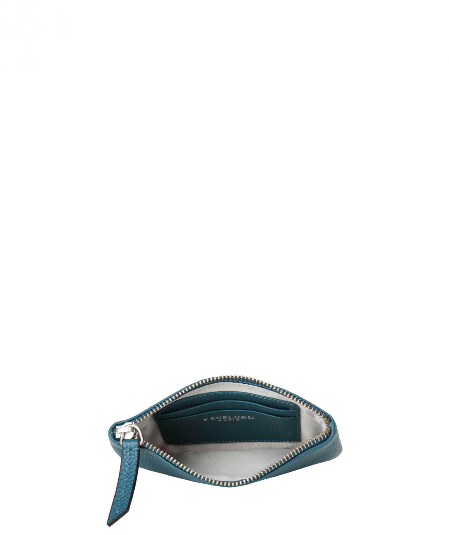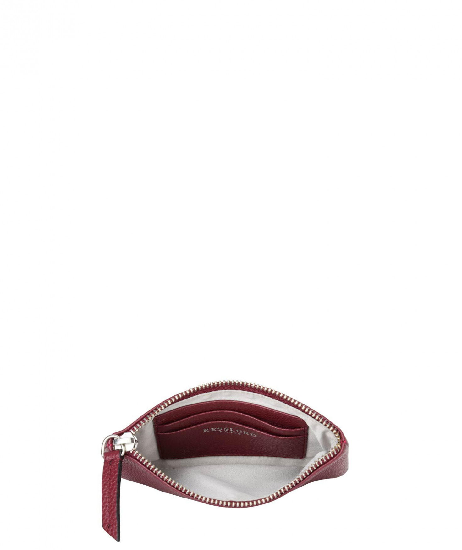 Trousse en cuir de veau grainé - Doublure en polyester - Dimensions en cm (HxLxP) : 10x16x1